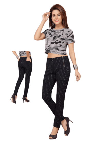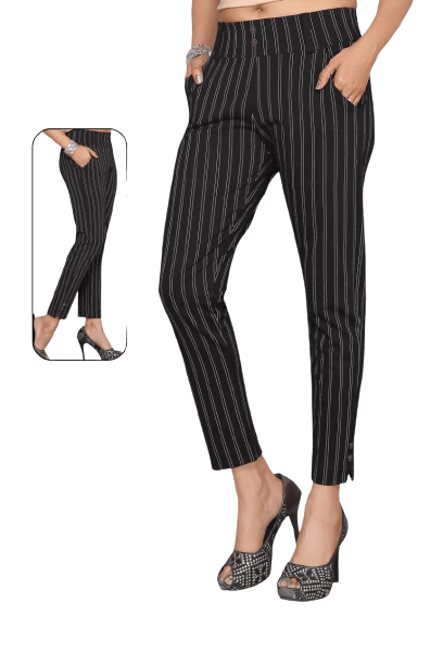 Give your apparel collection a fresh new lease of life by adding this pair of jeggings from Harita Art. It features a stripe pattern that lends it a modish look. Crafted with care using premium quality fabric, it also scores quite high on the comfort quotient while also ensuring easy maintenance.