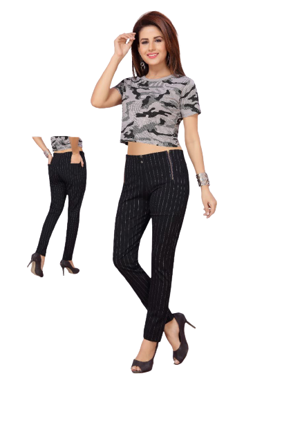 Give your apparel collection a fresh new lease of life by adding this pair of jeggings from Harita Art. It features a stripe pattern that lends it a modish look. Crafted with care using premium quality fabric, it also scores quite high on the comfort quotient while also ensuring easy maintenance.