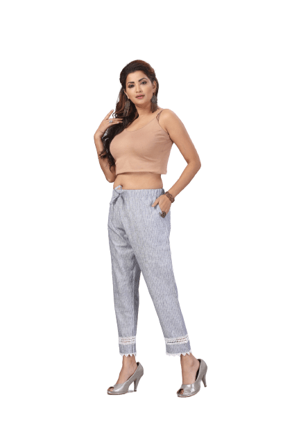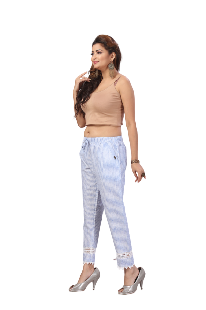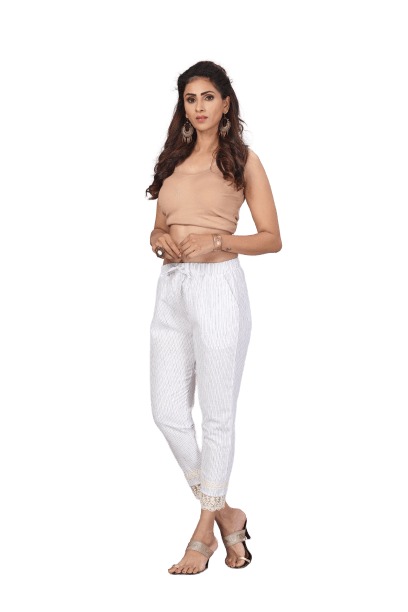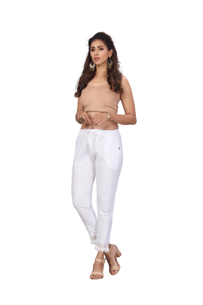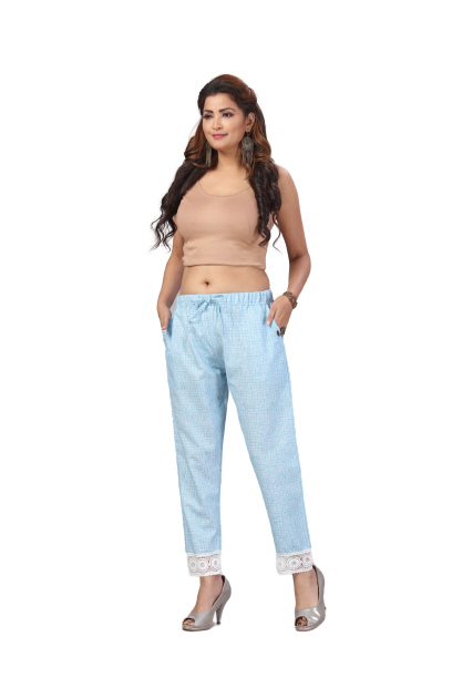 Upgrade your collection of basics with these cotton pants by Harita Art . Crafted in finest cotton and accentuated with cut-out detailing on the edges, this pair is making itself a perfect choice for summers. Take home wear with your favorite top or kurtas.